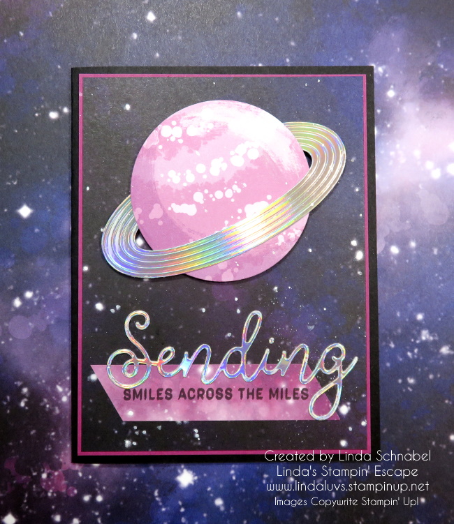 I colored the shuttle with the LIGHT Night of Navy Stampin’ Blend and then highlighted it with Wink of Stella … that gives it the blueish silvery tone! Looks cool right!