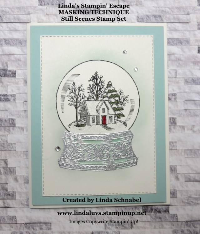 Because I used the MASKING Technique on this card, I started with the Shimmery White Cardstock and it is perfect for the snow globe! I wanted to use ONLY the images from the stamp set.