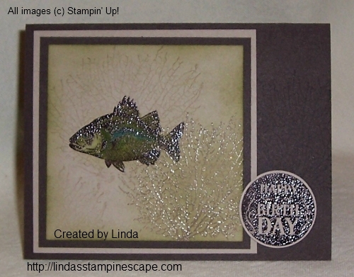 Now to finish off the card I added the Cherry Cobbler Bakers twine and a “Frosted Finishes Embellishment”.