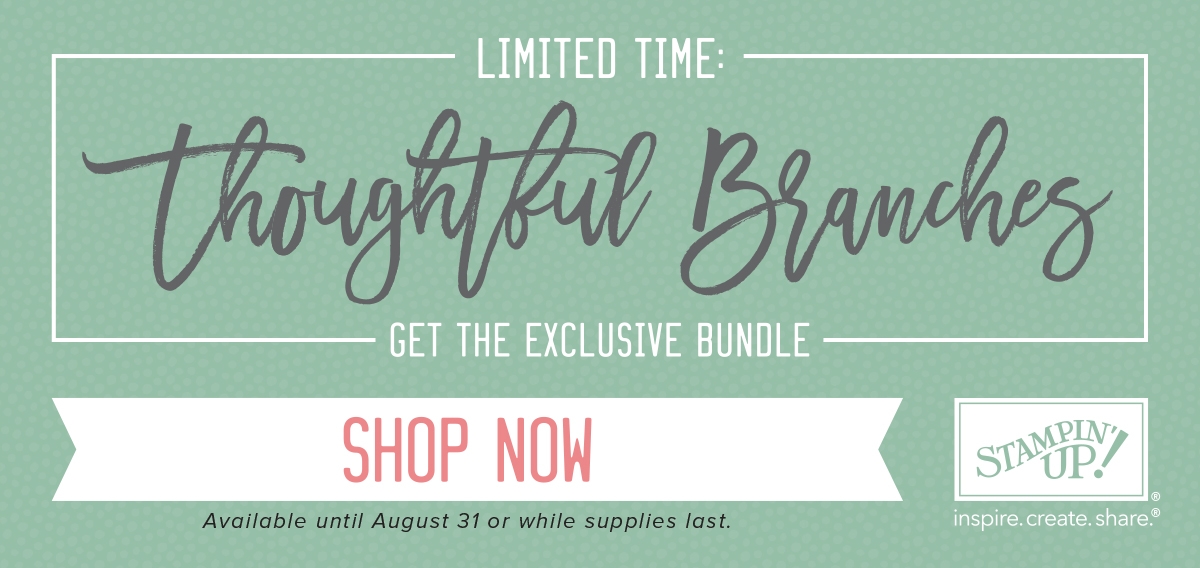 I hope you enjoyed my card today … Remember that the “Thoughtful Branches” is an exclusive stamp set / bundle which end on August 31st, so if you really like this … just click the link I have for you below and you can purchase it today.