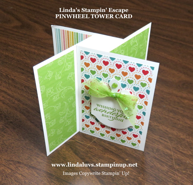 I’m so excited to share the Pinwheel tower cards and more with you today. I’ll be sharing the video replay of last nights Facebook LIVE which shares 3 different versions of the Pinwheel Tower card with the dimensions you need to create your own.