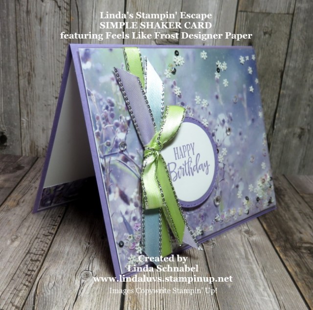 Shake it, Shake it baby … oooh, oooh!! I am excited to tell you that the stunning “Feels Like Frost” Designer Paper is on SALE in our clearance rack!! This was one of our HOTTEST designer papers that I can remember! With it’s gorgeous wintry patterns or touches of spring, the realitic look is nothing less than stunning.