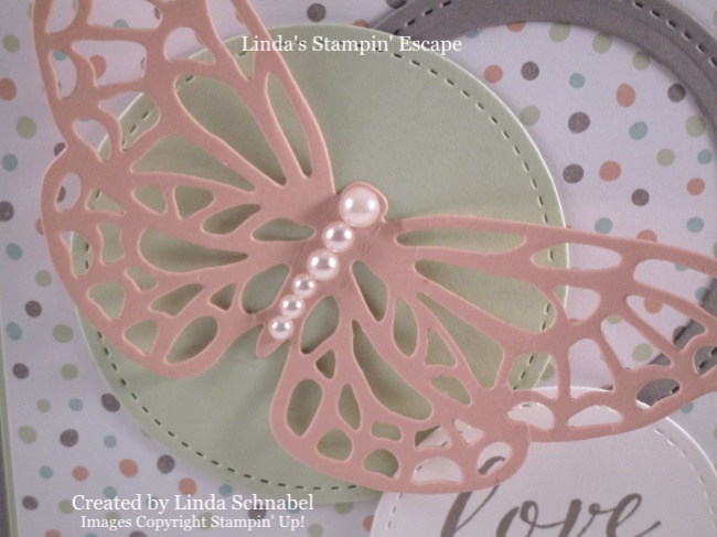 Watercoloring is the “HOT” look for cards right now and if you are not real comfortable with doing it yourself, this stamp set does the work for you with its watercolor splashes stamps. Then you have the swirls (I love swirls … so you?) They add such a fun whimsical look as in our Balmy Blue card on top.