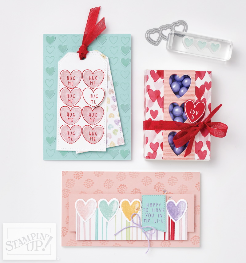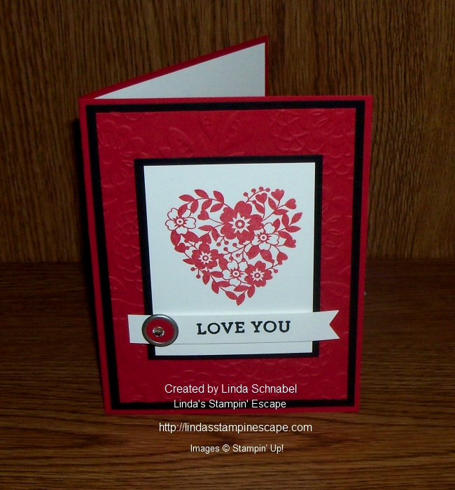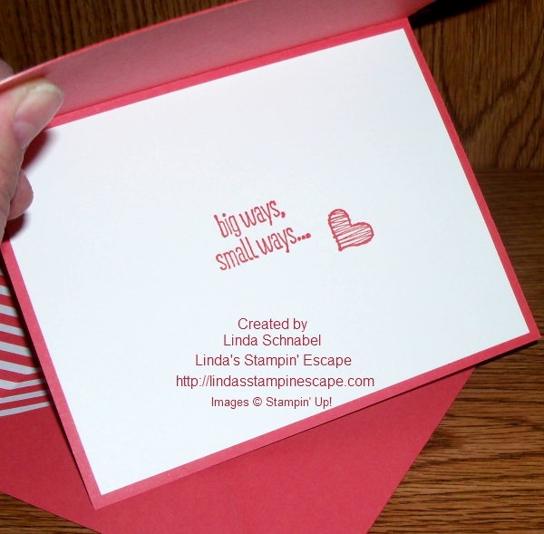 One last card for you … This is one of my favorites! I just love the way that the hearts are floating out of the little envelope.