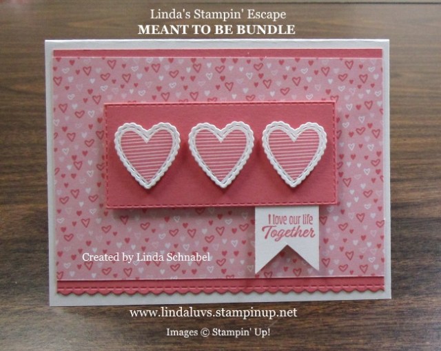 The hearts are stamped in Real Red and die cut so I could “pop” them up too! There is double the layers because I popped up the tags as well. This card wouldn’t have to be for Valentines at all … it’s a perfect way to say “I’m glad you’re in my life” to your friends (BFF!)