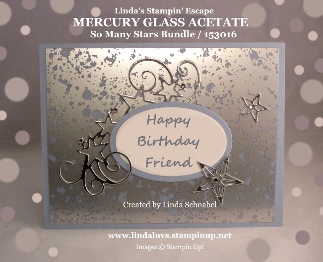 This is a fun acetate that makes great Christmas cards but I think it would also be perfect for a 25th Wedding Anniversary …Silver!! I will tell you there is a protective film on one side which you will need to remove if you want to punch designs out. I’ve also seen demonstrators “heat emboss” on this … just remember to use a light hand. Practice on a scrap piece of paper. Here is my card ….